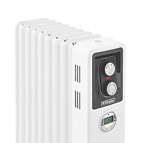 Oil-free column radiator, with a quicker heat-up time and more economical to run when compared to oil. Variable thermostat and 3 heat settings. Safety and overheat protection including tilt cut-out feature should the unit be knocked over. Programmable electronic timer with display. Easy-glide castors, integral carry handles and cable tidy.