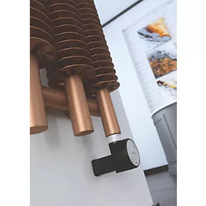 Wall-mounted radiator with thermostatic element and matt, smooth texture. Full operational control on smartphone/tablet via Bluetooth, with a choice of internal temperature (30 to 60°C) or ambient room temperature (15 to 30°C) regulation. Includes 2hr drying function whereby radiator will turn off automatically when time has elapsed. Easy to install.